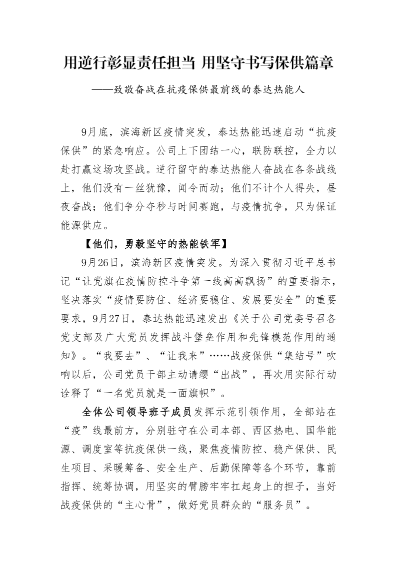 用逆行彰顯責任擔當 用堅守書寫保供篇章