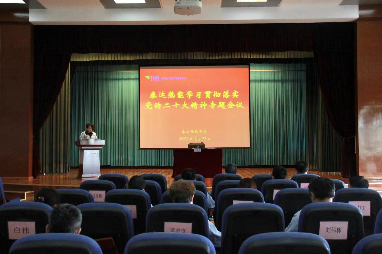 10月27日上午,泰達熱能召開學習貫徹落實黨的二十大精神專題會。黨委書記、董事長劉衛東同志傳達天津市領導干部大會和泰達控股系統學習貫徹落實黨的二十大精神專題會議精神,并對泰達熱能下一步學習宣傳貫徹黨的二十大精神作出部署。黨委辦公室主任呂冬梅同志主持會議,并傳達黨的二十大精神。公司領導、各單位第一負責人、各支部書記及支委參加會議。