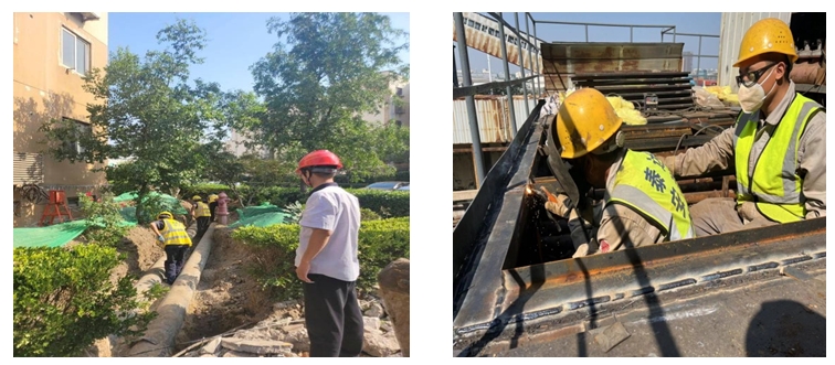 運管中心利用“十一”期間用汽用戶的停運期,對蒸汽管網開展檢修,涉及濱海熱電廠、科技大學、AC海晶站,共計4條主網(16個子項),完成對主網管道彎頭、主網閥門、疏水閥門、自動疏水器的更換維修。西區熱電對1630余用戶接入端的閥門和管道進行更換改造,對居民區換熱站的熱工設備、主管網閥門、二次管網閥門進行更換維修,有序推進供熱設備的保養檢修。泰達安裝對經開區內的恂園里、嘉德園、康翠園等多個老舊小區庭院及樓棟內的公共供熱管網改造升級,工人師傅們不畏辛勞,克服不利施工條件,精心拆改用戶管道。同時,多臺挖掘機在小區內有序作業,開槽、吊裝、填土,每一個環節都緊密相連、高效推進。