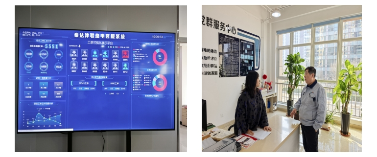 泰達熱能專注提供高質量服務,成立了一支專業技能過硬的供熱客服團隊,實現熱線從受理到辦理的轉變,更加專業、精準、快速地服務用戶。開通 24 小時供熱服務熱線,嚴格按照“三二一”服務標準,秉持“提高供熱服務 降低用戶有效投訴”的原則,派發并辦結12345熱線、8890熱線工單共計5074件,較歷史同期降低60%,各類工單及時辦結率100%。連續六年成立冬季供熱服務臨時黨支部,下設供熱志愿服務隊,深入156個小區開展供熱核查等一系列工作。落實供熱管家服務工作,制定“訪民問暖”工作方案,強化與經開區建交局、泰達街的工作聯動,維修人員24小時待命,現場辦公,接訴即辦,以專業的技術、高效的服務為居民排憂解難。