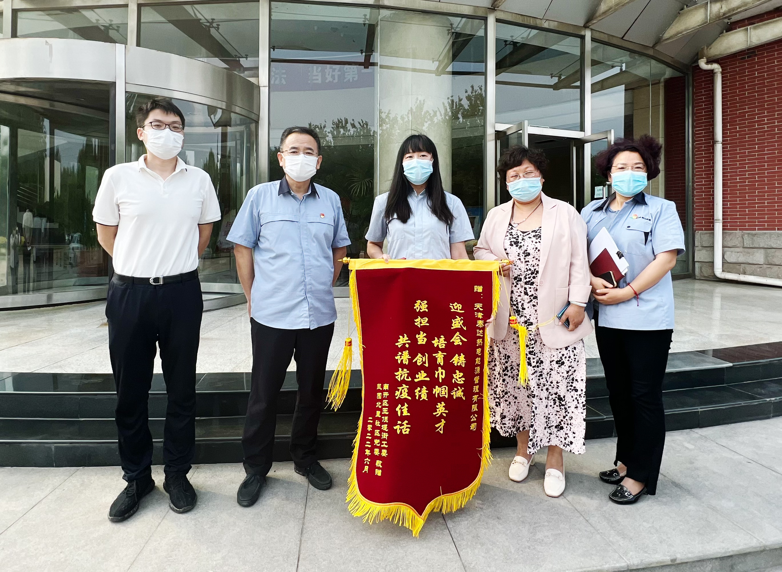 5月,天津又一輪疫情來襲,讓春暖花開的季節驟然緊張起來。疫情就是命令,全員核酸檢測命令下達后,許許多多的泰達熱能人聞令而動、齊心協力、勇挑重擔,多次參與社區疫情防控志愿服務活動,服務了濱海新區、北辰、河北等8個區26個社區的居民,真正用自己的行動助力津城“大篩”。6月9日,南開區王頂堤街道工委、社區有關負責同志來到泰達熱能公司,將一面錦旗送到泰達熱能,表揚公司職工邱偉在本輪疫情中積極參與社區志愿服務,她身穿防護服配合醫護人員一同爬樓入戶采樣,完成35戶44人次的核酸采樣工作,即使中暑暈倒了,也依然心系志愿工作。南開區王頂堤街道工作人員還特別感謝泰達熱能公司在疫情期間全力支持街道、社區開展疫情防控工作,希望未來能與泰達熱能黨委結對共建,共同進步、優勢互補。